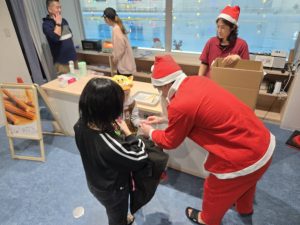 温かいプールでいっぱい身体を動かし楽しんだ後は チュロスとクリスマスプレゼント🎁配布😊
