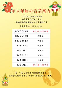 2025年も残すところ1週間を切りました💦 年末年始の営業は以下の通りです‼️ ご確認下さいませ😊2025年はプール改装工事があり、 その期間は皆様にご不便・ご迷惑をおかけしました🙇 リニューアル後、明るく、温かいプールをご利用していただいて おりますが、これからも皆様に満足していただけるよう 頑張っていきます☺️ 2026年は1月5日(月)13:00~営業致します。 年末年始の運動不足解消にノトアで運動始めしませんか❓🏊♀️🏃 皆様のご来館お待ちしております😄