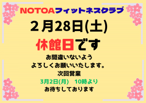 2月月末休館日のお知らせ